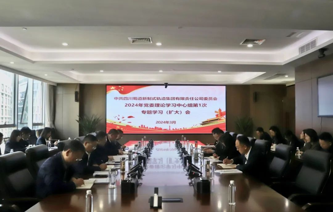 3月25日,蜀道新制式軌道集團黨委召開2024年黨委理論學習中心組第一次專題學習(擴大)會,對近期習近平總書記重要講話精神,中央、省委和蜀道集團黨委重要會議精神進行了傳達學習。蜀道新制式軌道集團黨委書記、董事長羅廷主持會議,全體領導班子成員、集團派駐監事、本部中層管理人員參加學習。