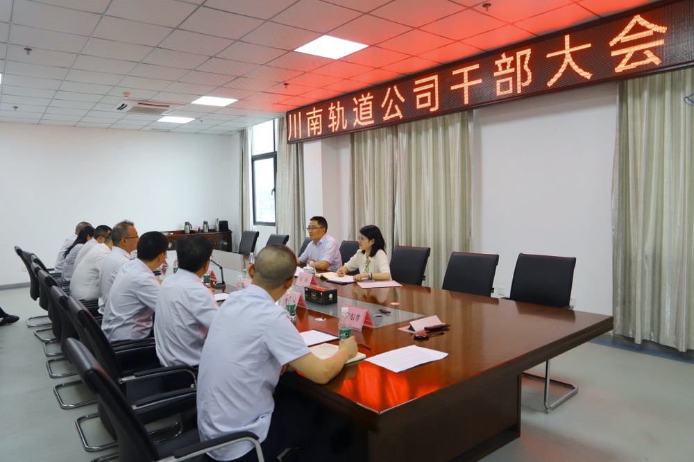 6月22日,川南軌道公司召開干部大會。蜀道新制式軌道集團黨委副書記、職工董事、工會主席龍潛,黨委工作部(人力資源部、宣傳部)副部長滕婭出席會議。川南軌道公司黨總支書記、董事長、總經理李樹培主持會議。