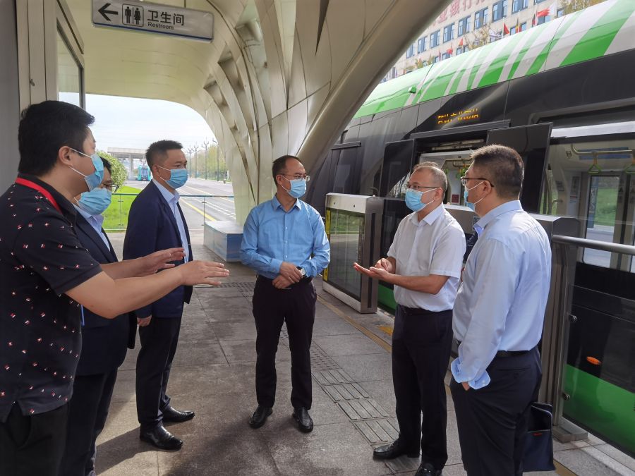 檢查組一行實地檢查了T1線車輛段、智軌產業(yè)園站,T2、T4線停車場,詳細了解了智軌運營和建設過程中安全環(huán)保、疫情防控、風險管控和拆遷設計等工作情況。