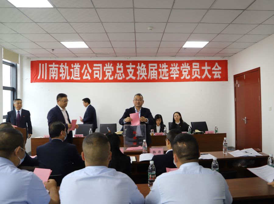 10月26日下午,川南軌道公司召開黨總支換屆選舉大會。蜀道新制式軌道集團黨委副書記、職工董事、工會主席龍潛,黨委委員、紀委書記蒙麗燕,黨委工作部(人力資源部、宣傳部)副部長王霞到會指導。川南軌道公司黨總支書記、董事長、總經理李樹培主持會議。公司全體黨員參加會議。