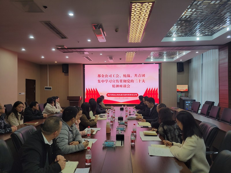 11月18日,都金公司召開工會、統戰、共青團學習宣傳貫徹黨的二十大精神座談會。會議傳達學習了黨的二十大精神,以及省委、省國資委黨委、蜀道集團黨委、蜀道新制式軌道集團黨委、都金公司黨委關于學習貫徹黨的二十大精神,公司在家職工、統戰成員及青年團員參加了會議。